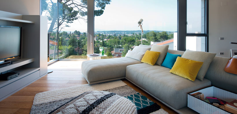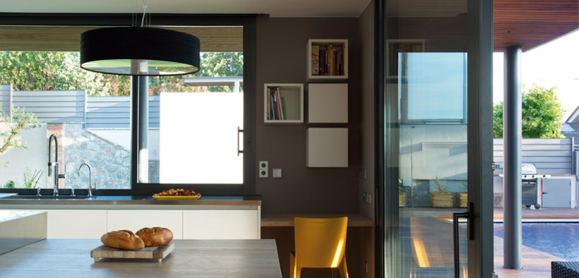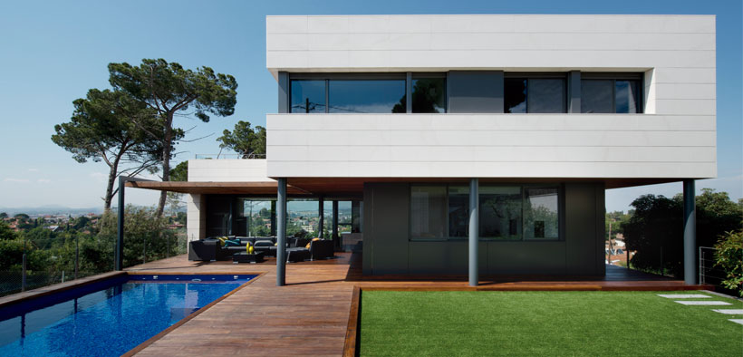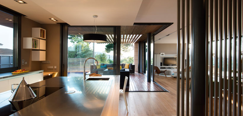 Unifamiliar diàfana, situada en un entorn natural privilegiat, s'obren amplis finestrals cap a l'exterior convertint el programa d'estades en una rica harmonia de colors.