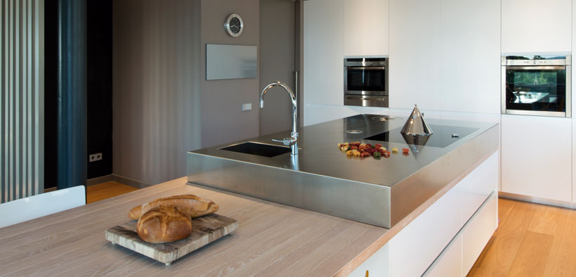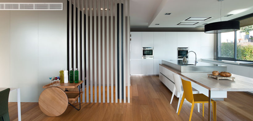 El mobiliari de la cuina defineix formalment els límits de l'estada.