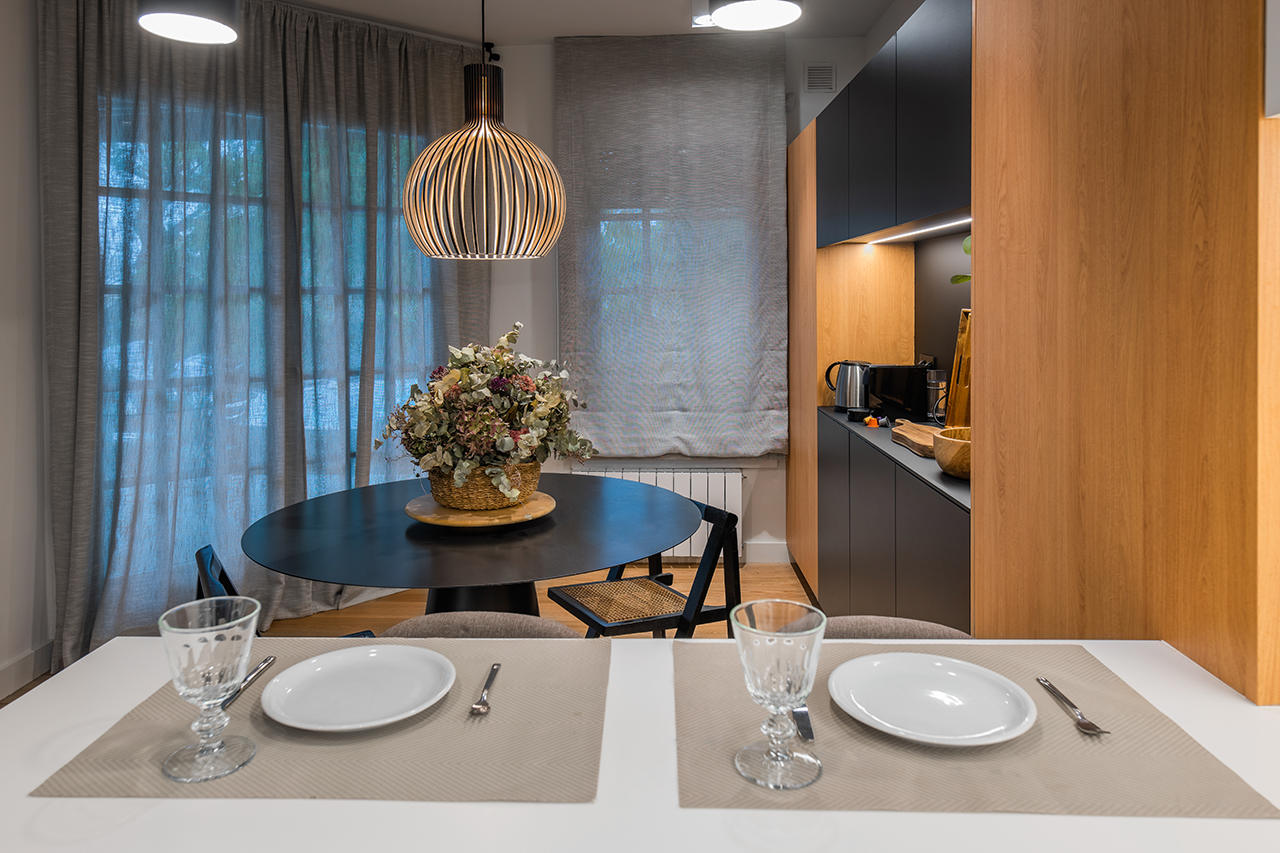 La zona del menaje está compuesta por muebles con madera de roble natural, y la elegancia del negro que combinan a la perfección para dar ese pequeño toque místico y nipones.